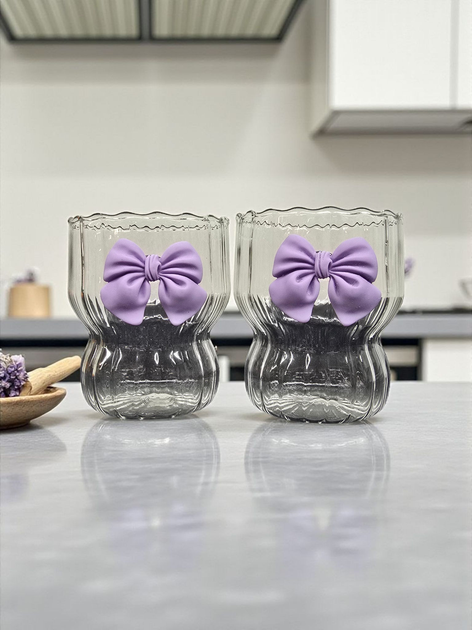 Geef je matcha-moment een stijlvolle upgrade met deze handgemaakte glazen set van 2 stuks. Elk glas is afgewerkt met een charmante strik en verkrijgbaar in drie prachtige kleuren: paars, roze en rood. Perfect als cadeau of om jezelf mee te verwennen.